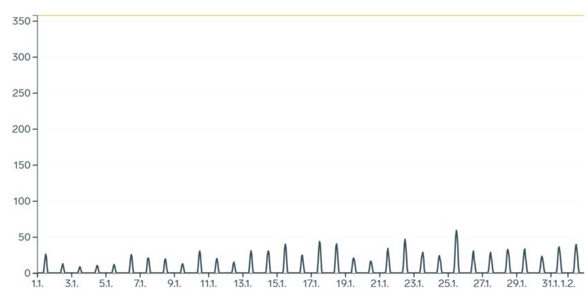 Tammikuu 2022 (min 0MW, max 59 MW, kapasit. 358 MW)