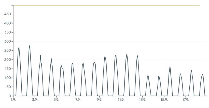 Syyskuu 2022 (min 0MW, max 277 MW, kapasit. 498 MW)