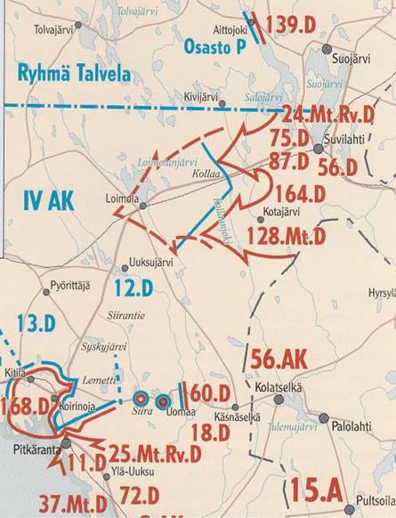 joukkojaan kiertämään yhä kauempaa Kollaanjoen puolustajien sivustaan.