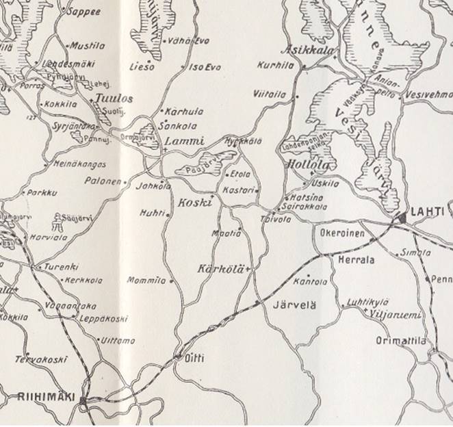 linjan Riikonen-Rippola (siis 3 km etelään ja 2 km pohjoiseen Huhdista) sekä