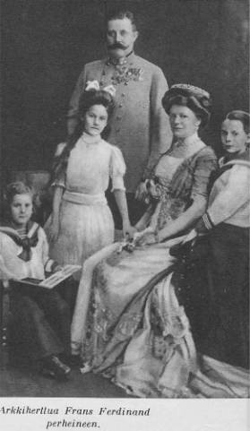 Niinpä Frans Ferdinandia ja hänen puolisoaan Sophieta kuljettava avoauto ajoi kaikille tiedossa olevaa reittiä, jonka vieressä odotti Gavrilo Princip revolverinsa kanssa. Princip ampui kaksi laukausta, jotka johtivat molempien kuolemaan.[xxxv]