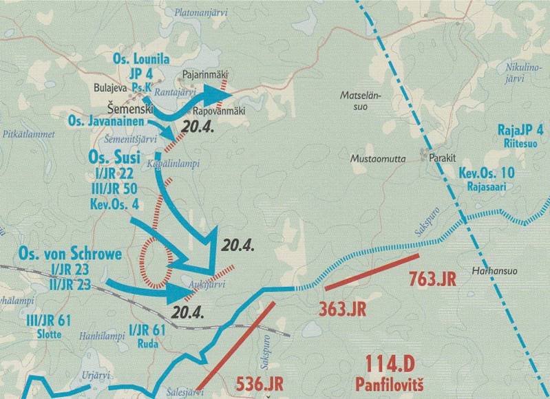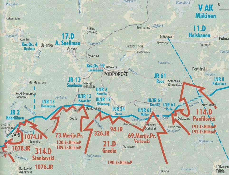– ja 114.D, 191.Er.HiihtoP sekä 192.Er.HiihtoP. Tällä jälkimmäisellä päähyökkäyssuunnalla