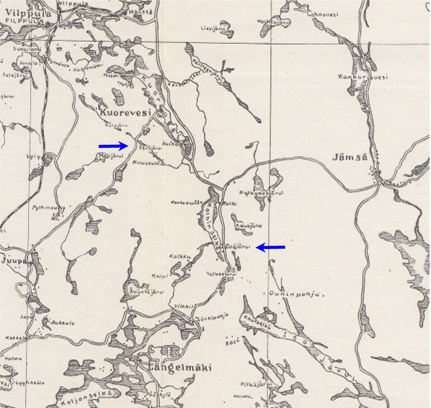 punaiset Lylystä ja Juupajoelta käsin Kuorevedelle. Mänttään jäänyt osa