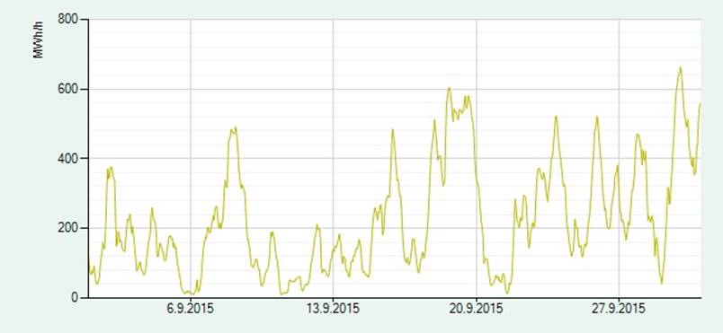 1.9.-30.9.2015. Minimi 9MW, maksimi 662MW.