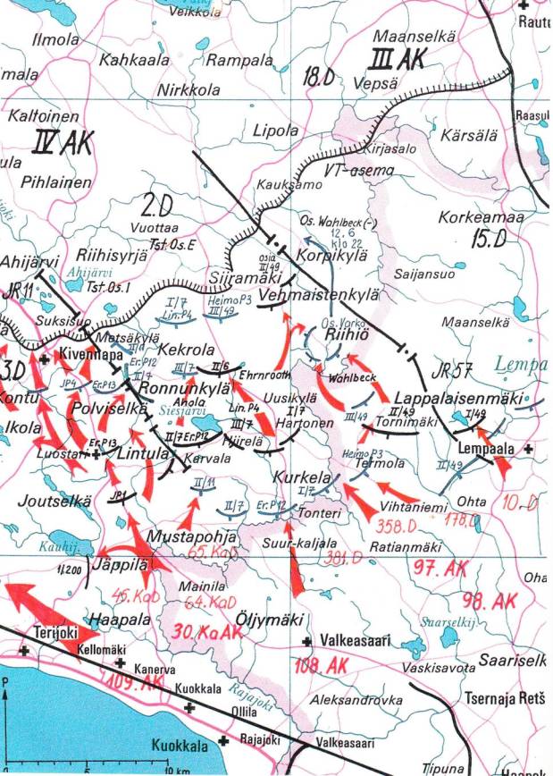 10.6. iltapäivällä IV AK:n (armeijakunta) vetäytymään VT-asemaan viivyttäen