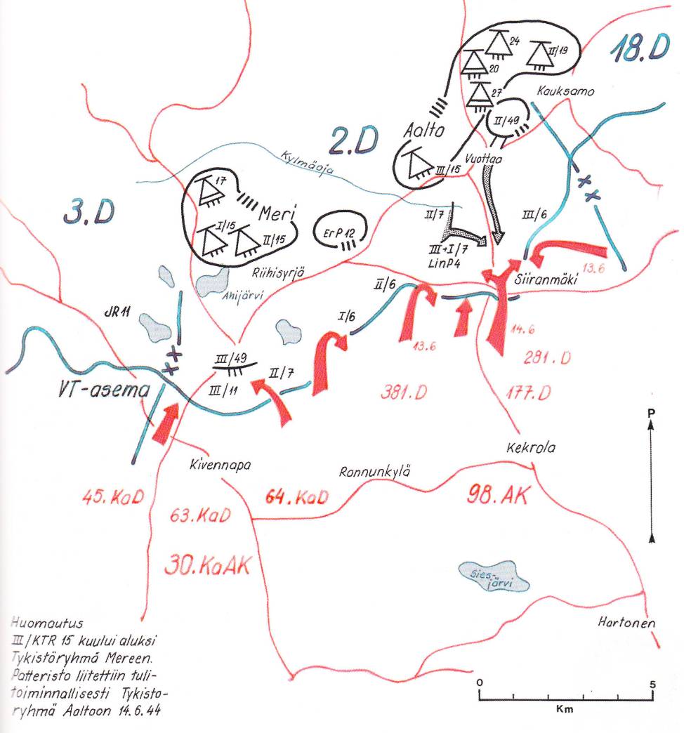 2D:n asemiin, vaan ei läpimurtoa. 2.D:n tykistö ampui 10.6. noin 10 500