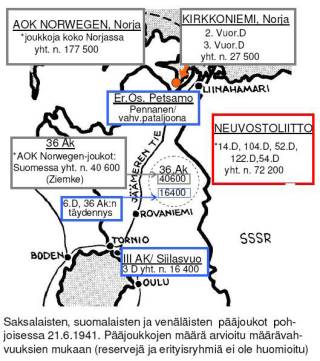 Petsamoon oli silloin hyvin huonot kulkuyhteydet, eivätkä nämä divisioonat